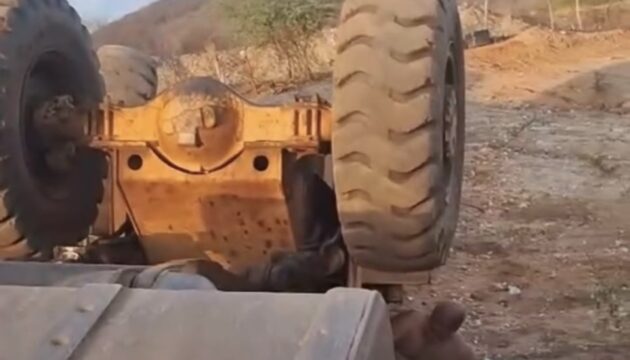Operador fica preso sob à máquina de trabalho após o equipamento tombar as margens da rodovia que liga Currais Novos á São Vicente