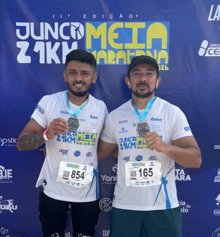Neste domingo (15), os atletas Felipe Pimenta e Edson Soares representaram o município na prova de 21 quilômetros da I Meia Maratona de Junco do Seridó (PB).