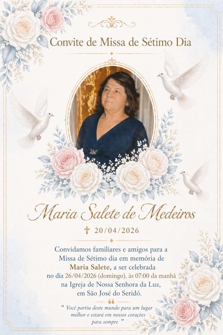 È com imenso pesar que comunicamos o falecimento de Maria Salete de Medeiros ocorrido hoje em São José do Seridó