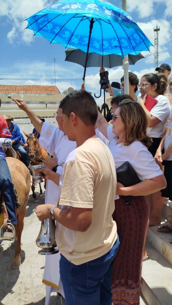 O céu azul e o sol forte acompanharam os devotos em um momento especial de união e esperança.